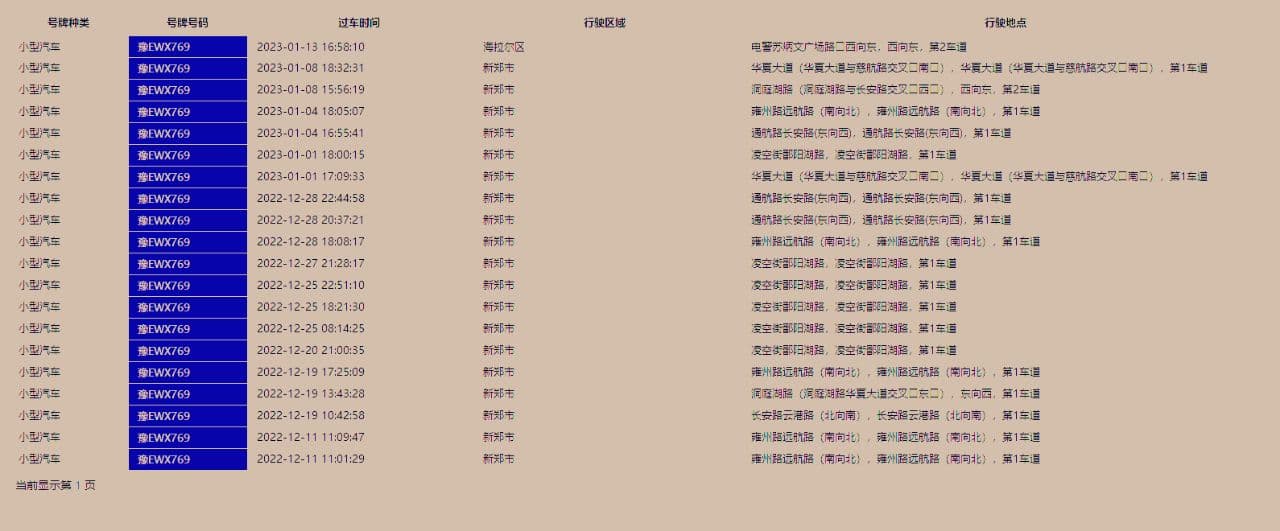 要查询车辆轨迹,需要提供的信息是车牌号。目前的车辆轨迹默认出市区版本。